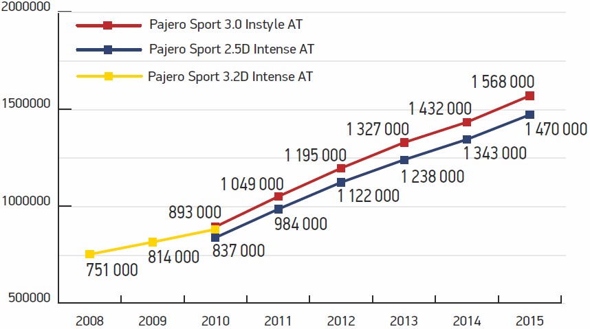 Стоимость Mitsubishi Pajero Sport на вторичном рынке