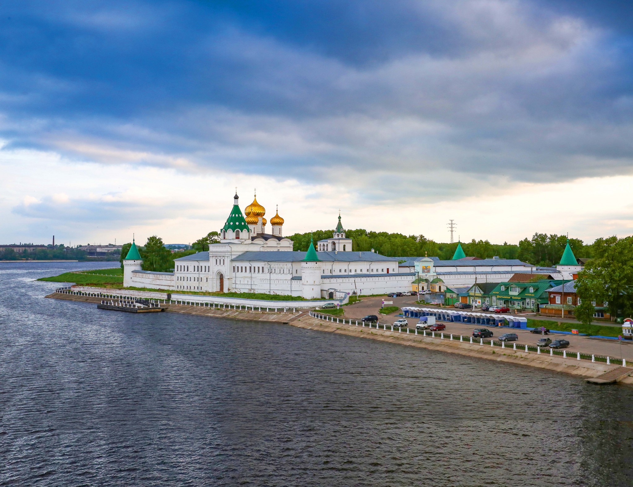 Расположен город на обоих берегах Волги, у устья реки Костромы, так что пейзажи тут по умолчанию завораживающие. А особенно красиво у Ипатьевского монастыря, куда мы и отправились первым делом. Нам на улицу Просвещения, 1. Рядом – большая бесплатная парковка, а дальше – уже пешком.