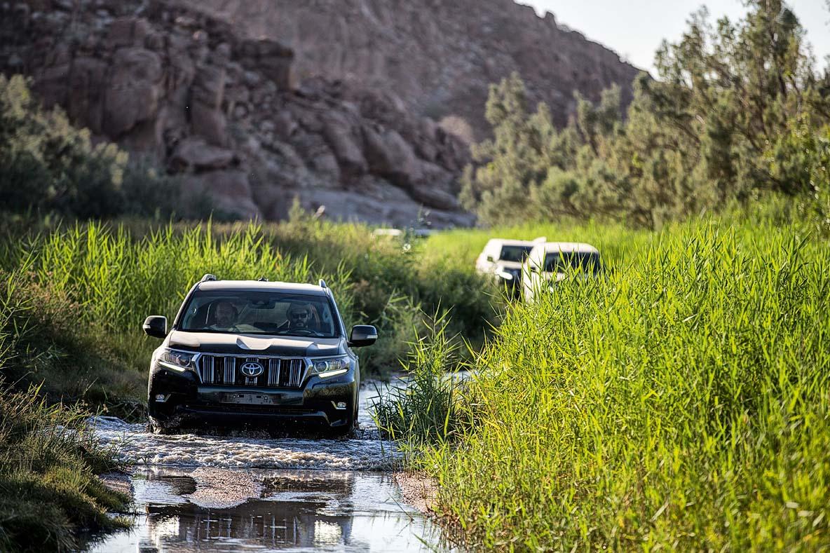 Впрочем, и наш транспорт был что надо – свежеобновленные внедорожники Toyota LC Prado, легко узнаваемые по центральному жёлобу на капоте и новым строгим фарам без противоречивых, «стекающих» вдоль радиаторной решетки узких секций.