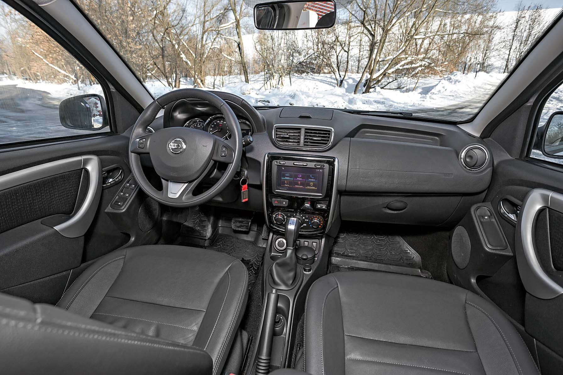 К передним сиденьям привыкать не пришлось. Удобно, мягко. Красная подсветка приборов и кнопок уступила место куда более приятной белой, а вместо жутковатого «гриба» селектора автомата – изящный рычаг. Словом, Terrano движется в правильном направлении. По зимней поре пригодились электрообогрев лобового стекла и дистанционный запуск двигателя (для версий с АКП). Эх, ему бы еще подлокотник между передними сиденьями, да обогрев задних…