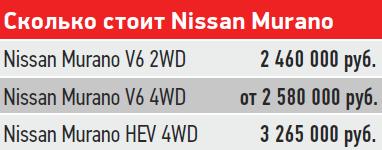 На дороге Nissan Murano ведет себя степенно, едет с хорошо уловимым акцентом на комфорт. По паспорту 249-сильный кроссовер разгоняется до 100 км/ч за 8,2 с. Казалось бы, неплохо для автомобиля с таким количеством оборудования на борту и полным приводом. В жизни же запаса мощности хватает едва-едва. В поворотах Murano не чурается кренов и даже не стесняется порой свалиться с траектории. Однако сильные стороны «японца» проявляются на плохой дороге – кроссовер позволяет безбоязненно ехать на приличной скорости даже по очень плохой дороге. Даже на проселочной «грунтовке» можно не сбавлять скорость, все равно покой водителя и пассажиров не будет нарушен. И это очень полезное умение для наших несовершенных дорог. Пожалуй, даже полезнее, чем утонченный интерьер.