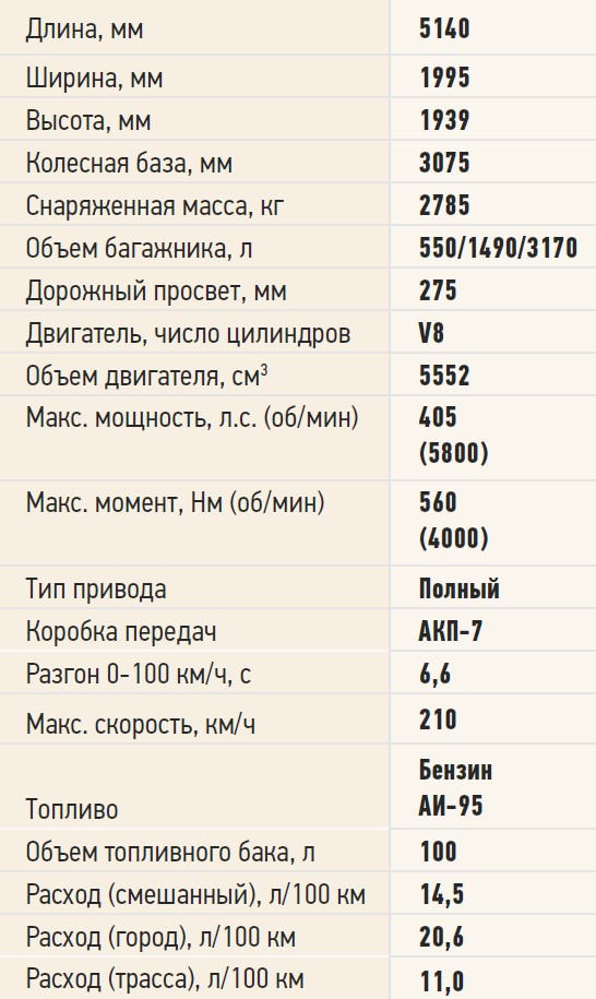 405-сильная V-образная «восьмерка» VK56VD – единственный полагавшийся россиянам мотор – несмотря на системы непосредственного впрыска топлива и регулирования фаз и высоты подъема клапанов VVEL известен поистине легендарным аппетитом. В городе 25 литров на «сотню» для него нормально. Однако в благодарность служит он долго, легко перемещая могучее тело внедорожника как по асфальту, так и на бездорожье.