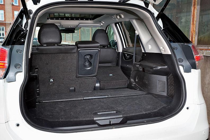 Места в салоне X-Trail действительно много. Даже на фоне старшего Murano, который на 258 мм длиннее, «младшенький» в дисциплине «вместительность» выступает достойно – просторно и спереди, и сзади будет в обоих. На втором ряду Nissan X-Trail жизненное пространство пассажиров организовано на твердую пятерку. Можно регулировать не только угол наклона двух независимых кресел, но и двигать сиденья в горизонтальной плоскости. В центральном подлокотнике с двумя подстаканниками спрятан внушительных размеров бокс. За ненадобностью он легко убирается, освобождая место для третьего пассажира. Ему, к слову, будет вольготно.