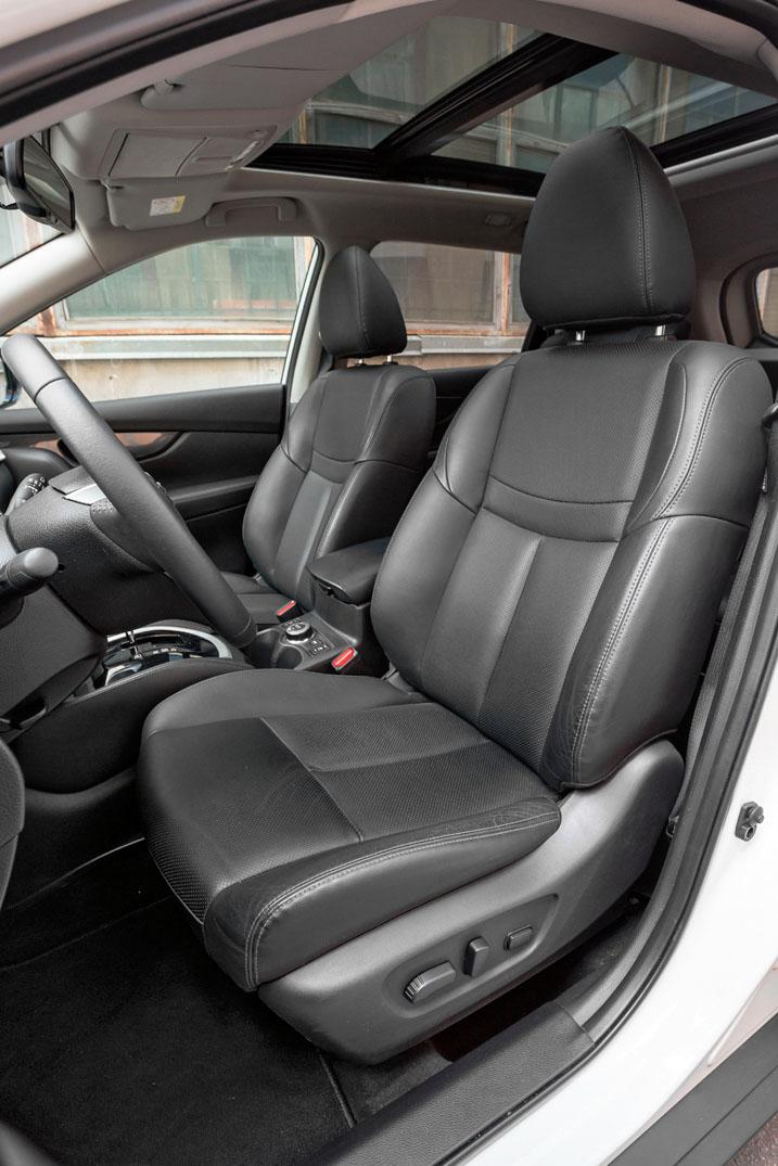 Еще один плюсик в копилку Nissan X-Trail – хорошо продуманный интерьер, который к тому же и смотрится очень достойно. Конечно, ради изысканного внешнего вида придется раскошелиться. К примеру, кожаная отделка сидений доступна, начиная с комплектации LE, которая обойдется минимум в 1 840 000 рублей (базовая цена – 1 464 000 рублей). За автомобиль с двигателем 2.0 в максимальном исполнении LE Top попросят заплатить 1 982 000 рублей, а за модификацию с 2,5-литровым мотором придется выложить 2 062 000 рублей. И за эти деньги покупатель получит далеко не одну только кожаную обивку. В списке оснащения значится оборудование, за которое было бы не стыдно и автомобилям более высокого класса. Бесключевой доступ в салон, запуск двигателя кнопкой, панорамная крыша, камера с системой кругового обзора, мультимедийная система с 7-дюймовым сенсорным экраном... В общем, оборудование «Ниссану» назначали щедрой рукой. Жаль только, что климат-контроль – двухзонный. Трехзонный (и тем более четырехзонный) недоступен даже за доплату. Автомобилю с такими немаленькими размерами (длина кроссовера составляет 4640 мм) и просторным салоном «печка» для пассажиров второго ряда была бы очень кстати. Но на нет и суда нет.