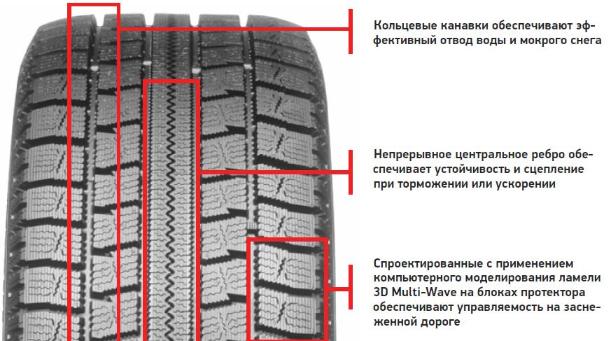 По мере приближения к столице с неба летел уже не просто снег, а какая-то смесь грязи и воды, которая мгновенно залепляла фары. А на дороге было больше воды, чем снега. Но и тут надо отдать должное производителю – предусмотрели и такой вариант развития событий. Четыре продольных водоотводящих канала эффективно удаляют воду и мокрый снег из пятна контакта.