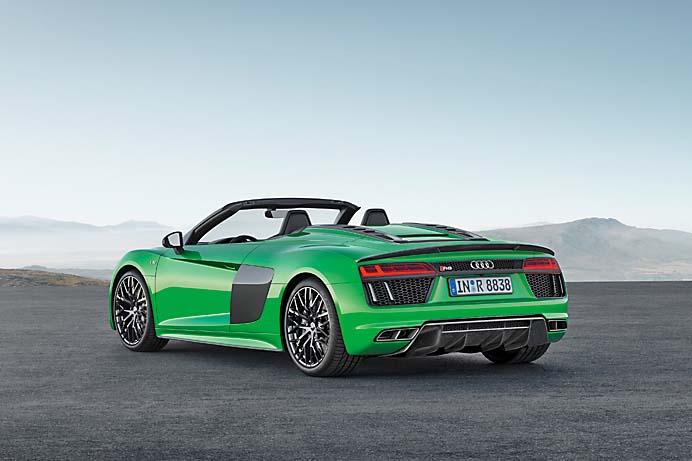 Audi представила родстер R8 с двигателем мощностью 610 л.с. Автомобиль с атмосферным V10 под капотом способен разогнаться до 100 км/ч всего за 3,3 с. А максимальный крутящий момент составляет 560 Нм! Audi R8 Spyder V10 plus оснащен полным приводом и семиступенчатой роботизированной коробкой передач.