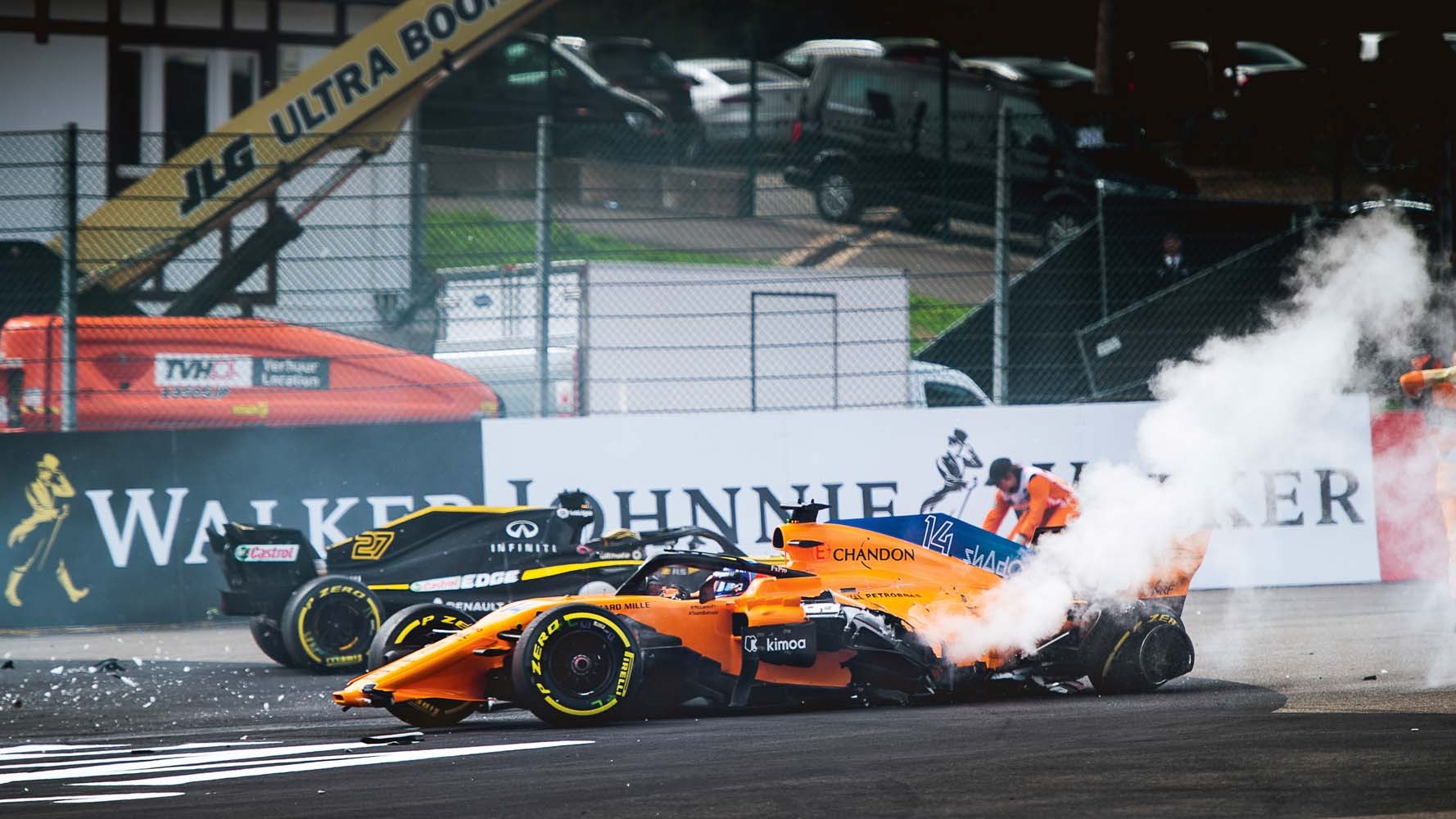 Фернандо Алонсо, в результате оранжевый McLaren испанца взмыл в воздух и пролетел над Sauber Шарля Леклера, чью голову от жесткого удара спасла та самая инновация Halo. Пролетающий Алонсо зацепил Red Bull ничего не подозревающего Дена Риккардо, который в свою очередь ударил Кими Райкконена. С пробитым колесом и заклинившей системой DRS финн буквально доковылял до боксов, но финишировать не смог. Валлтери Боттас на старте тоже ошибся с торможением, и задел Williams Сергея Сироткина, но оба добрались до финиша. Финн прорвался на четвертое место, а Сергей финишировал 12-ым, опередив напарника и показав свой лучший результат.