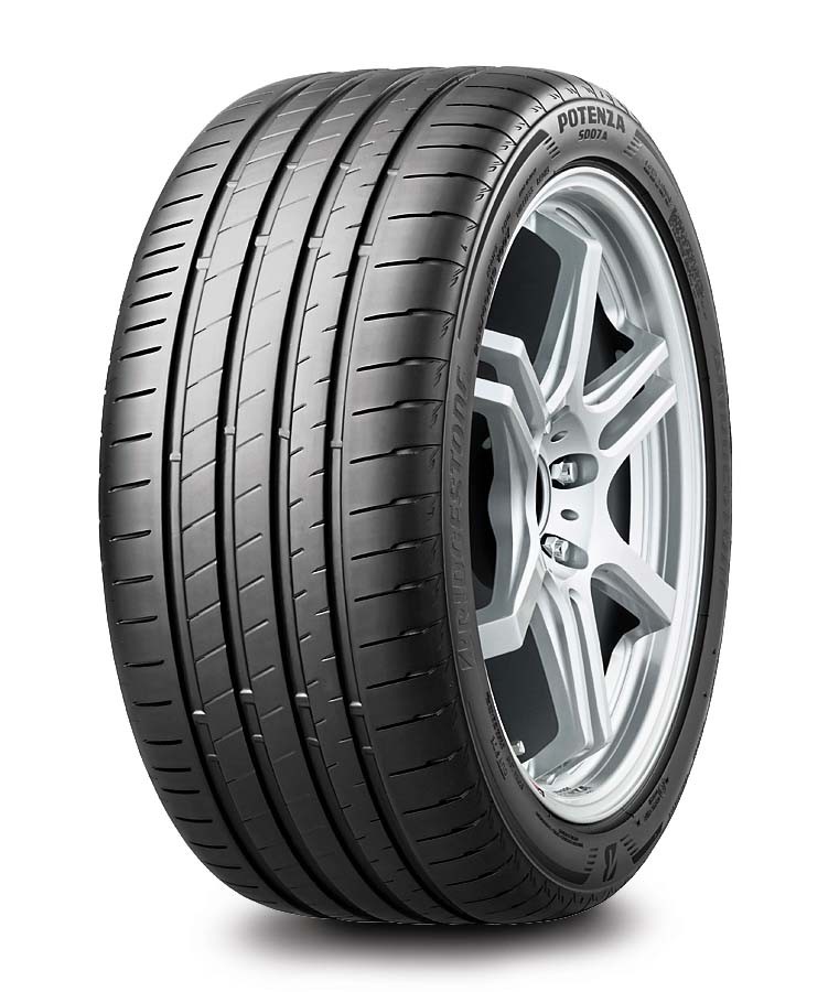 Шины Bridgestone Potenza S007A предназначены для премиальных и высокопроизводительных автомобилей. В Bridgestone приводят в пример BMW M, Mercedes-AMG, Audi RS, Porsche 911, Lexus F Sport. На нашем тесте были и Lamborghini, и Ferrari, и Chevrolet... К примеру, Potenza S007А ставится на заводе на кабриолет Ferrari Portofi no, а также на ряд спортивных моделей Aston Martin, BMW и Audi. По сравнению с флагманской шиной предыдущего поколения (S001) новые шины обеспечивают большую стабильность машины в поворотах. За это стоит благодарить более жесткие боковины – теперь резина даже при очень большой нагрузке на гоночной трассе меньше деформируется в поворотах. Это обеспечивает большую площадь пятна контакта, лучшее сцепление и стабильность автомобиля.