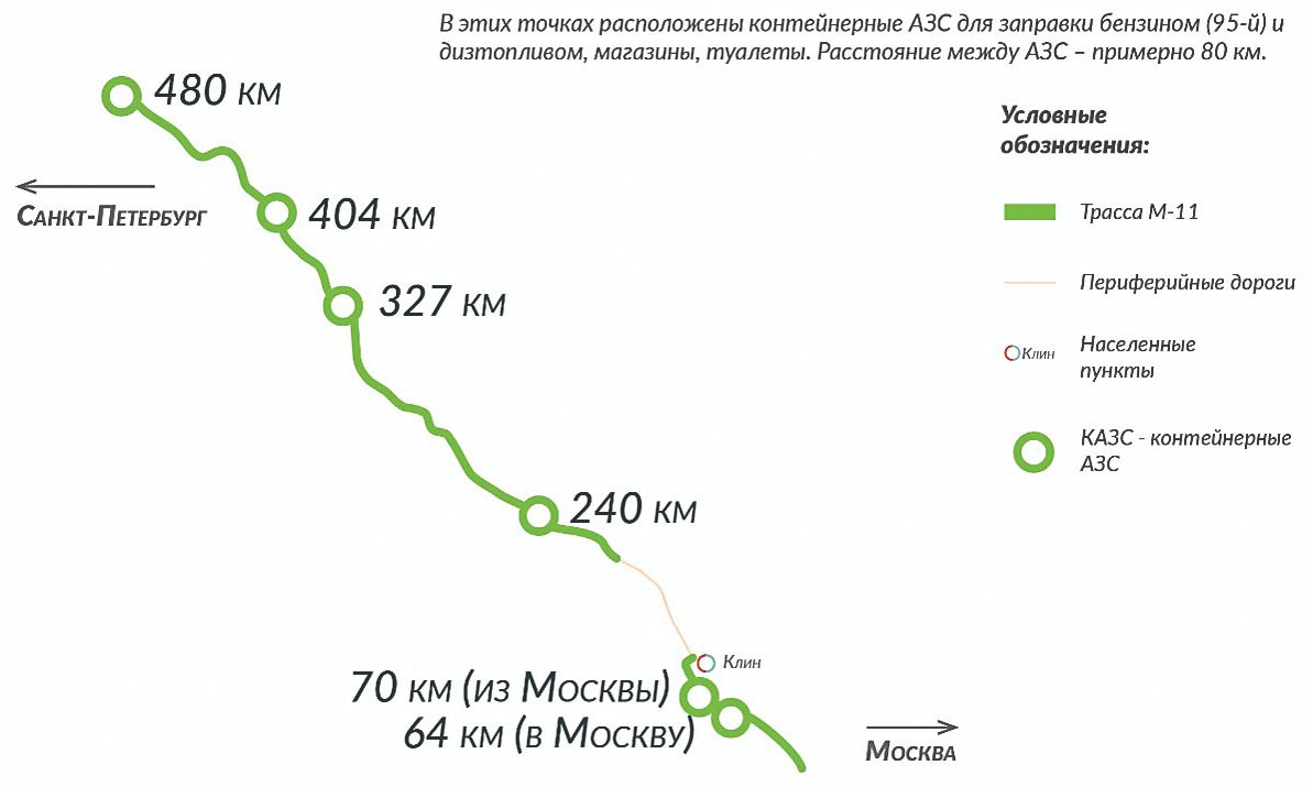 Где заправиться на трассе M11 «Москва — Санкт-Петербург»