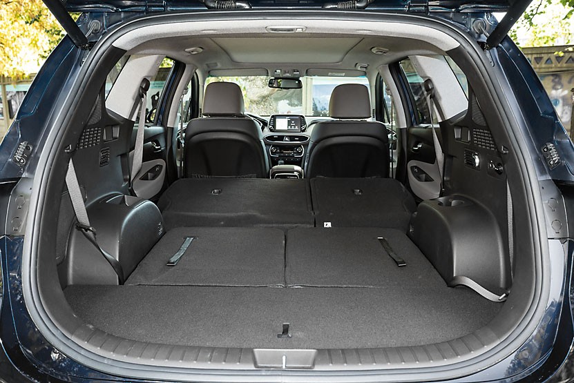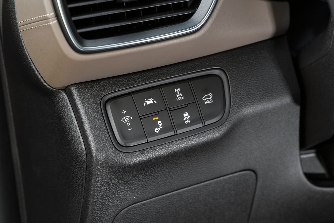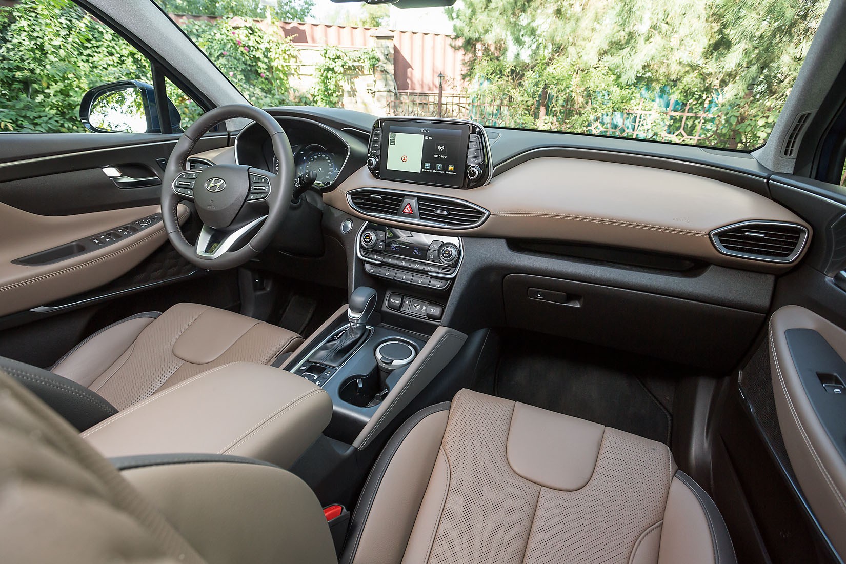 В Hyundai решили отказаться от семиместной версии с приставкой Grand. Так что теперь новый Santa Fe будет работать за двоих. За доплату в 50 000 рублей можно заказать третий ряд сидений (но только для двух старших комплектаций). Спинки сидений «галерки» можно поднять, потянув за специальные тканевые ремни. А вот чтобы отодвинуть сиденья второго ряда, достаточно нажать кнопку, расположенную на боковой стенке багажного отсека. На «галерке» могут разместиться двое взрослых, если, конечно, поездка предстоит недолгая. Кстати, на последнем ряду есть отдельный климат-контроль. А вот для тех, кто путешествует посередине, климат не предусмотрен – только дефлекторы обдува. Зато двухзонный климат-контроль для водителя и переднего пассажира входит в стандартное оснащение всех без исключения исполнений. Базовый набор оборудования, к слову, оказался более чем щедрым, и это несомненно хорошая новость для покупателей.