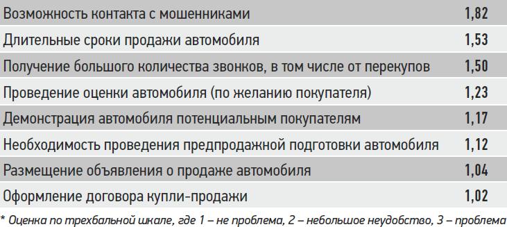 Оценка минусов, связанных с личной продажей автомобиля, баллы *