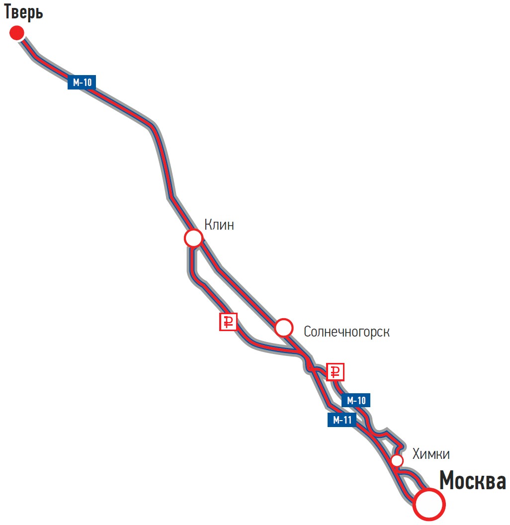 Из Москвы в Тверь ведет федеральная автомобильная дорога М-10 «Россия», расстояние от МКАД 150 километров. Как вариант, можно поехать по платной М-11 «Москва-Санкт-Петербург» в объезд Химок, Солнечногорска и Клина. Это увеличит маршрут на 10-20 километров, а по времени сократит его на 20-30 минут – в зависимости от выбранных участков платной трассы. Тарифы зависят от дня недели, времени суток и категории автомобиля. Стоимость можно уточнить на официальном сайте. Состояние дорог отличное, кроме как на въезде в Тверь – там вас ждут люки и ямы вокруг них, будьте внимательны.