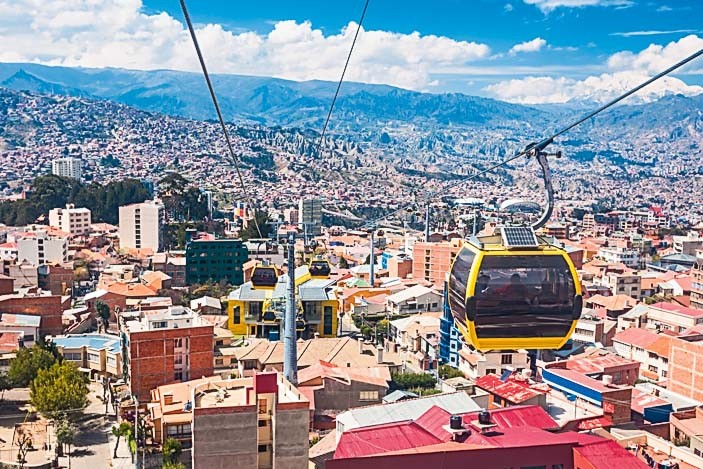 - MI TELEFÉRICO. ДОРОГА В БОЛИВИИ стала общественным транспортом, с ее помощью можно быстро подняться от Ла-Паса к высокогорному Эль-Альто (4 150 м). Длина всех ее веток около 30 км. Расстояние, которое автобус преодолевает за 1,5 часа, местные жители, которые пользуются «канатным метро», проскакивают всего за 24 минуты.