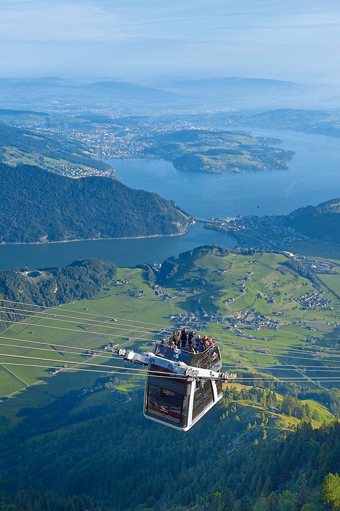 - CABRIO (ШВЕЙЦАРИЯ). Канатная дорога ведет к вершине горы Штансхорн (1 850 м). Современные двухэтажные кабины с открытым верхом стартуют из точки на высоте 711 м, до которой из деревни Штанс, это недалеко от Люцерна, вас поднимет самый древний в мире рельсовый фуникулер, собранный еще в 1893 году. А дальше, уже на канатной тяге со скоростью 8 м/с, к финальной точке на вершине. Длина дороги 2 300 м, а время подъема 6,5 минут. Любопытно, что в кабине одновременно размещаются до 60 человек.