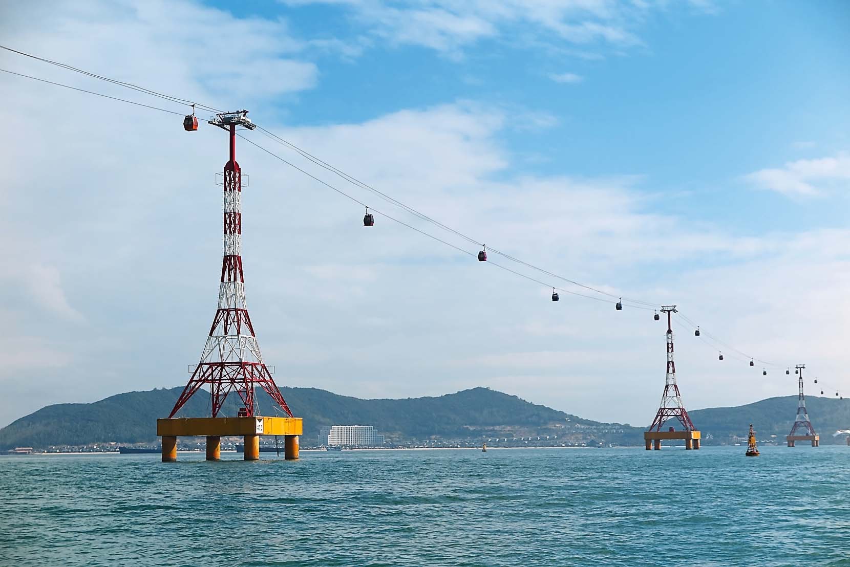 Дорога между материком и островом Хон Че, где раскинулся развлекательный парк Vinpearl Land – самая длинная в мире канатная дорога над морем. Ее протяженность составляет 3 311 м. Дорога висит на 9 опорах, 7 из которых стоят в море. Самая высокая опора достигает 115 м в высоту, 40 из которых прячутся под водой. Рассчитанные на 8 человек кабинки плывут на 70-метровой высоте довольно медленно – путь в одну сторону занимает около 20 минут.