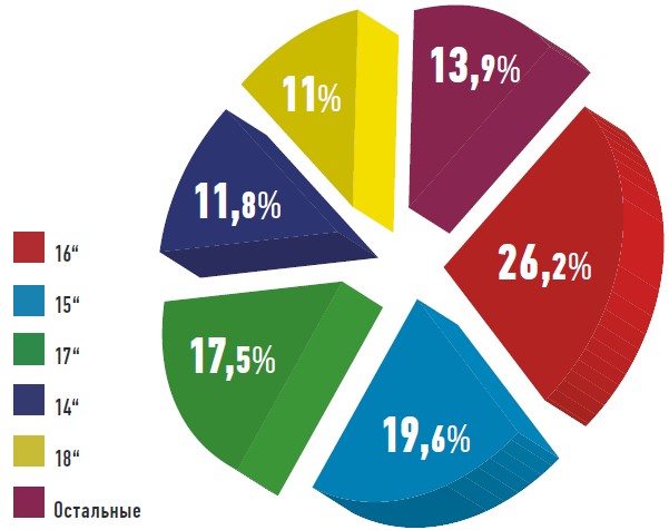 Наибольшей популярностью у россиян весной 2018 года пользуются летние шины диаметром 16 дюймов
