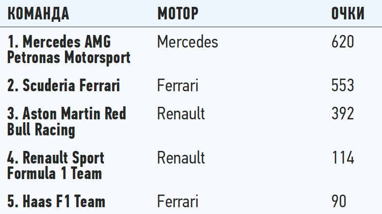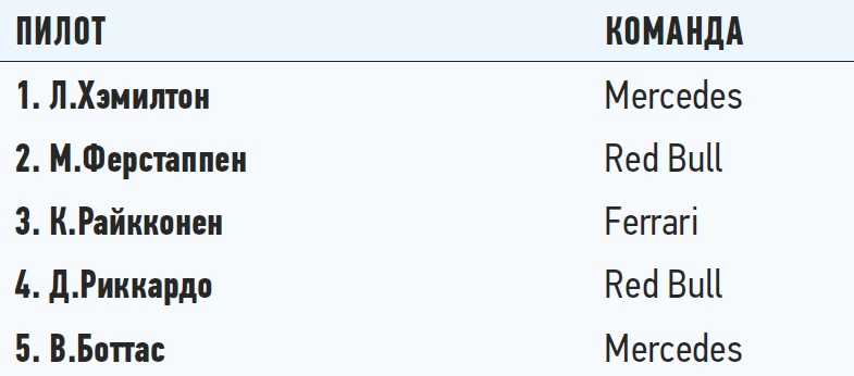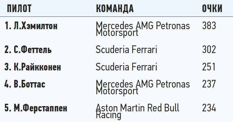 Положение в чемпионате: личный зачет пилотов пилот команда