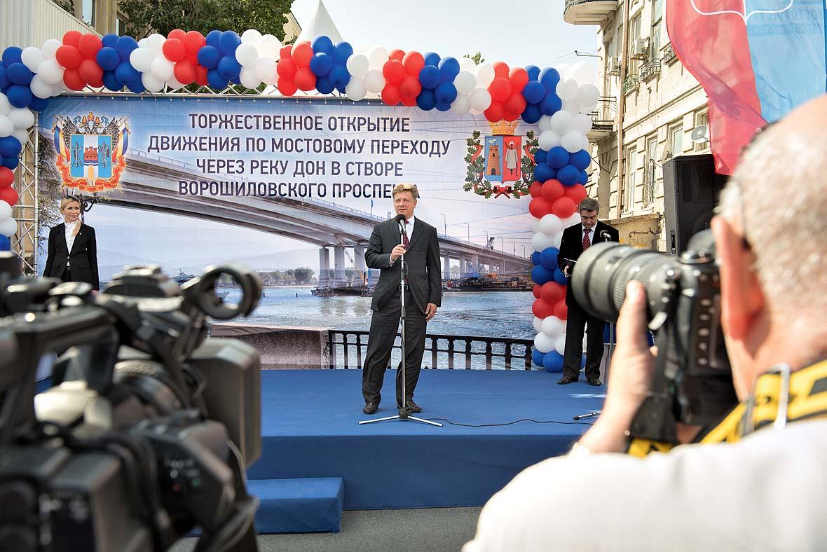 В Ростове-на-Дону в конце сентября после масштабной реконструкции прошла церемония открытия моста в створе Ворошиловского проспекта. В качестве «свадебных генералов» выступали министр транспорта Максим Соколов и губернатор Ростовской области Василий Голубев. Речь тут опять идет о стадионе на левом берегу Дона, к которому без этого моста фактически не подступиться. А между тем, Чемпионат мира по футболу уже на носу. В ходе реконструкции фактически были построены два моста, за счет чего общая пропускная способность перехода увеличилась до 80 тыс. машин в сутки. Стоимость работ на переправе составила 5,9 млрд рублей. Кстати, 1,5 млрд поступили в Ростов от «Платона».