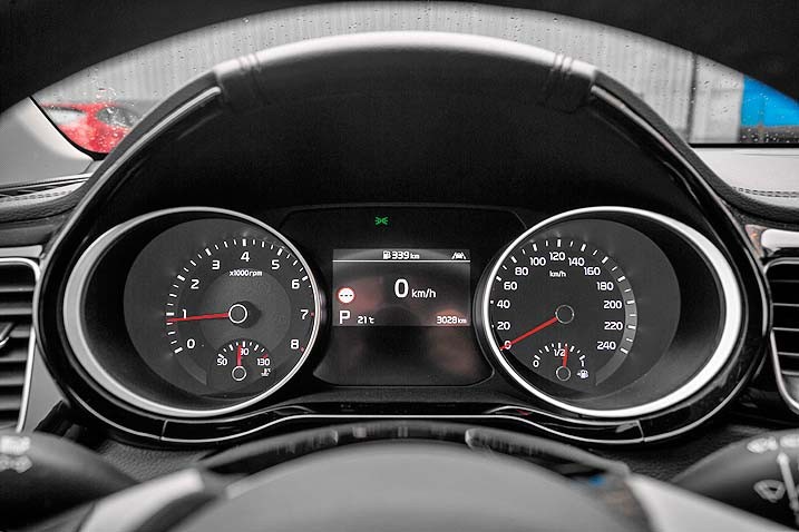 Хороший двигатель, а вот 7-ступенчатая роботизированная коробка DCT c двумя сухими сцеплениями не очень. При равномерном движении на малых скоростях ощущаются толчки при смене передач. Ради экономии топлива коробка при первой же возможности включает более высокую передачу, но при малейшем увеличении нагрузки снова «спрыгивает» вниз. Такая «пляска» и становится причиной рывков. В общем-то обычная история для трансмиссий подобного рода. Благо, от этой напасти есть действенное лекарство. Называется оно «Спортивный режим». При его активации компьютер коробки меняет передачи на более высоких оборотах и лишний раз их не тасует. Еще один ощутимый плюс данной опции – увеличение скорости реакции автомобиля на газ. Для оперативного маневрирования в плотном городском потоке весьма полезное качество, и не такое уж разорительное в плане затрат на бензин. Реальные цифры расхода Kia совсем немного превышают указанные в таблице паспортные.
