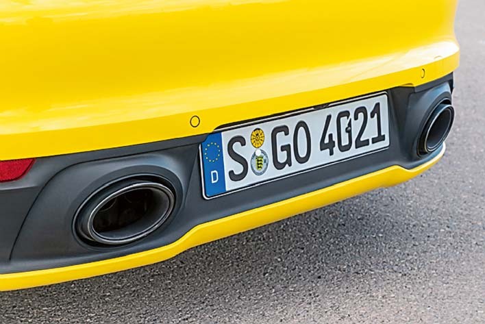 ВЕРХНЯЯ ЧАСТЬ ЗАДНЕГО БАМПЕРА на новом спорткаре сделана сплошной, без выштамповки под номер. Регистрационный знак теперь расположен ниже – между патрубками системы выпуска