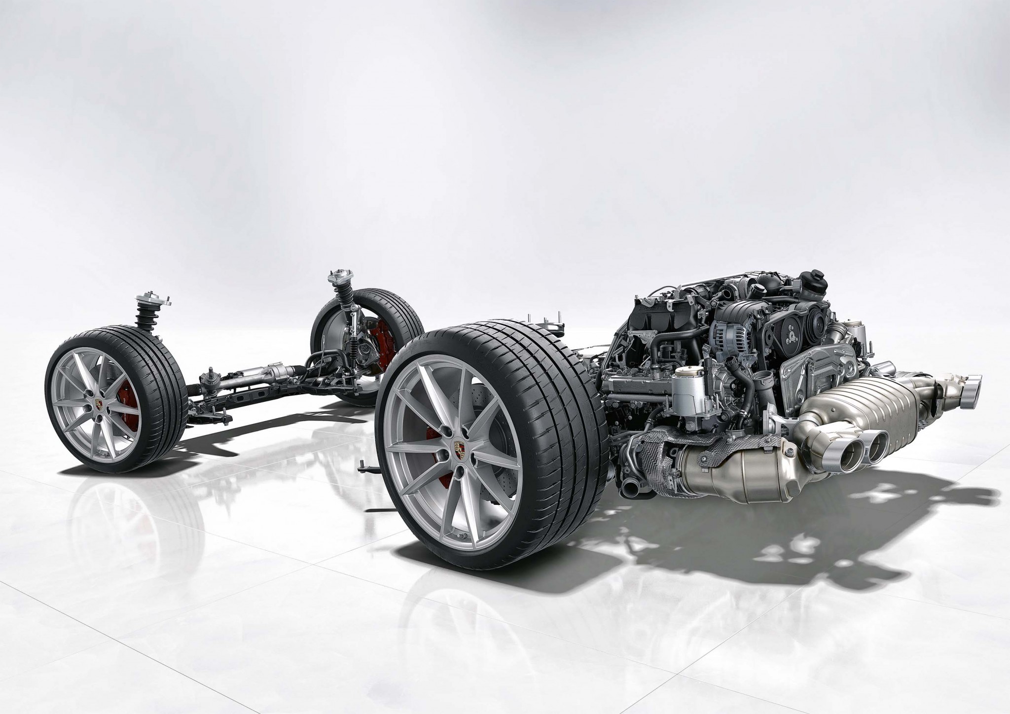 Так откуда же столь серьезный прогресс? Porsche 911 стал заметно шире. Если говорить конкретно, то передняя колея увеличилась на 46 мм, а задняя у моноприводных версий – на 39 мм. Модификации со всеми ведущими и прежде были широкобедрыми, и не красоты ради.