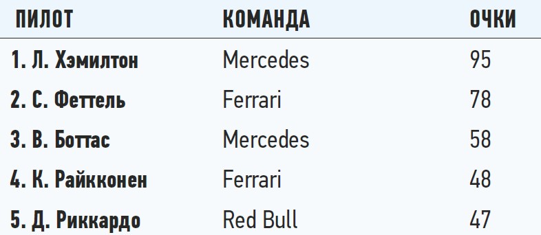 Про гонку в Испании говорят, что она показывает истинную расстановку сил. А еще из 27 соревнований в Испании 20 выигрывали обладатели поул-позиции. В этому году гонка не стала исключением. Показав лучшее время в квалификации в субботу, Льюис Хэмилтон уверенно одержал победу в Гран-при Испании. Все шло к тому что Феттель финиширует вторым и проиграет минимум очков Льюису в чемпионате. Но стратеги Ferrari решили провести второй пит-стоп под виртуальной машиной безопасности, рассчитывая, что на свежих шинах получится навязать борьбу команде Mercedes. Не вышло. Из-за заминки на пит-стопе Феттель выехал лишь четвертым, уступив подиум Максу Ферстаппену.