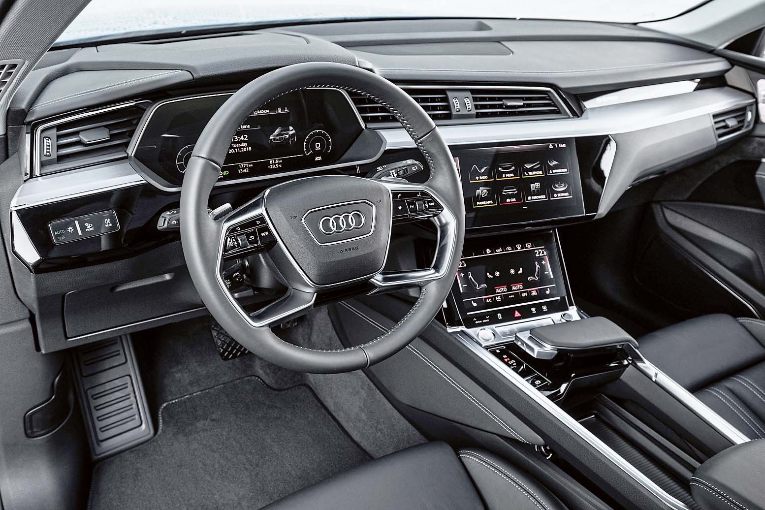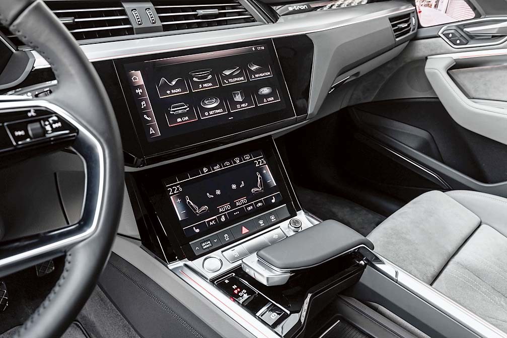 ДВА БОЛЬШИХ МОНИТОРА хорошо знакомы по другим моделям Audi. «Аналоговых» кнопок в e-tron практически не осталось. И это очень удобно.
