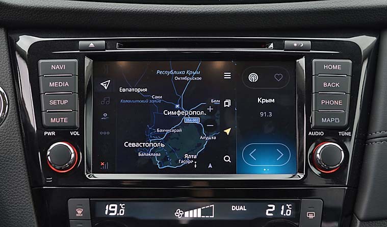 ЛОГОТИП NISSAN на дорогих версиях кроссовера скрыт под стеклом – за ним расположен радар, отслеживающий дорожную обстановку.