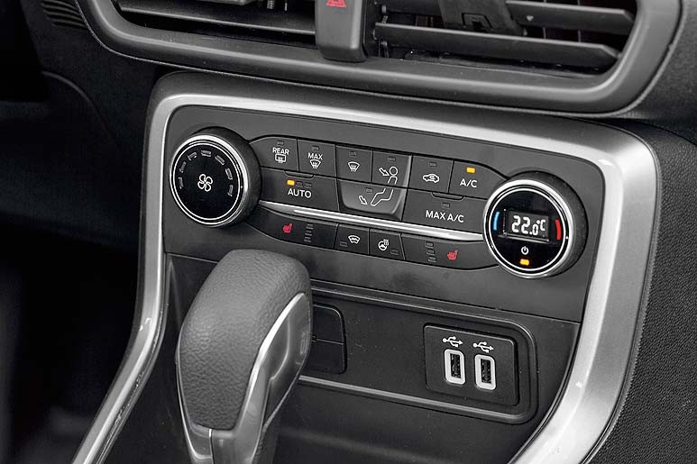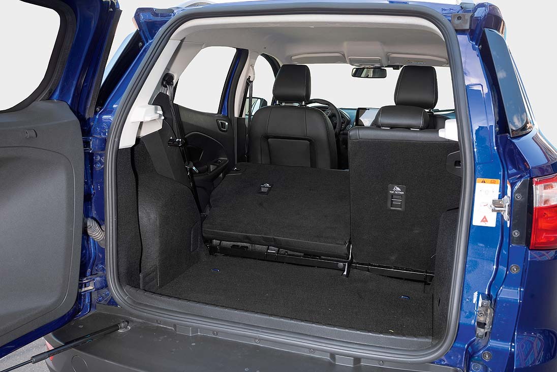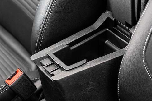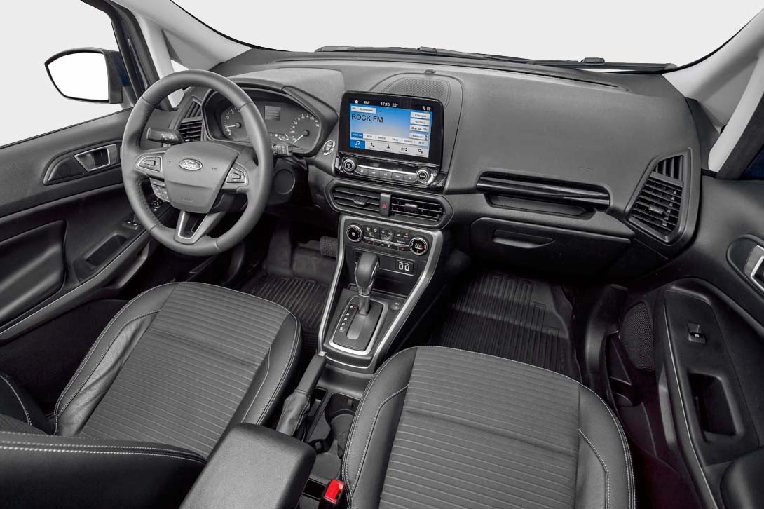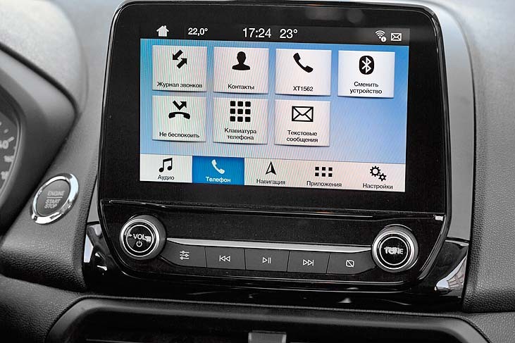 Однако салону «Форда» красок явно не хватает. Самое яркое пятно – новоприобретенный 8-дюймовый сенсорный экран небесталанной мультимедийной системы SYNC 3. Но пластик отделки, как и раньше, сер и тверд. Не добавляет радостных эмоций простецкая панель приборов, а мелкую нишу справа на «торпедо» и маленький бокс подлокотника никак не назовешь практичными. Тем не менее с эргономикой порядок, посадка удобная. Несмотря на короткую колесную базу, нет проблем с размещением взрослых пассажиров на диване. Багажник скромных размеров, зато с самой низкой из трех конкурентов погрузочной высотой.