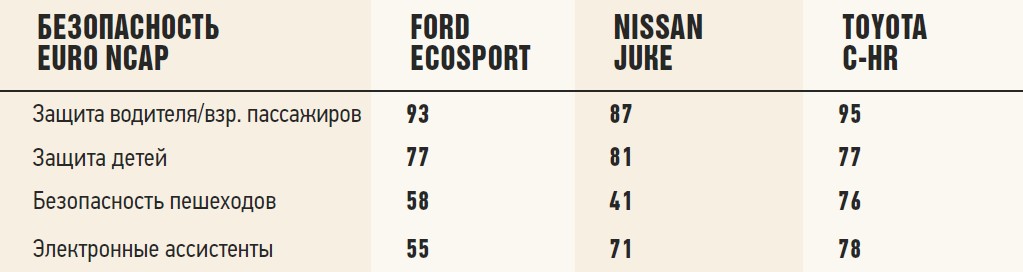 Абсолютно согласен с выбором большинства наших читателей. Пусть Toyota C-HR и существенно дороже соперников, но купить хочется именно ее, тем более, что никаких критических противопоказаний к этому не обнаружено. Если же дорогая отделка салона для вас не главное, то Ford EcoSport годится на все сто, правда турбомотору я бы предпочел 2-литровый атмосферный. А вот Nissan Juke очевидно нуждается не в ярких накладках, а в основательном техническом обновлении.