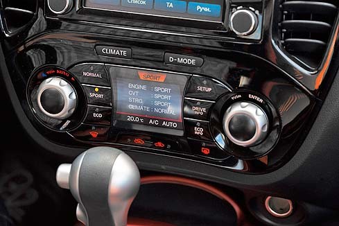 Не обошлось, впрочем, и без потерь. На нашем рынке сейчас продаются только переднеприводные модификации cо 117-сильным двигателем и вариатором. Но оптимизма и дерзости Juke не утратил. Свое британское происхождение он оценил минимум в 1 200 000 рублей. Доставшаяся же нам версия LE+ Perso с комбинированной (кожа/ткань) обивкой сидений, системой кругового обзора, 18-дюймовыми дисками и краской металлик стоит 1 432 000 рублей.