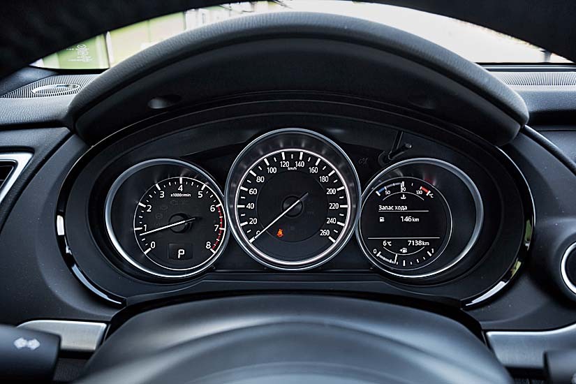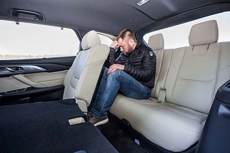 Все системы настроены помогать, не мешая. Аккуратными импульсами подруливает ассистент удержания в полосе, держась радарами за разметку. Траектория, проложенная электронным мозгом, идеально совпадает с выбранной водителем – отключить помощника рука ни разу не поднялась. Аналогичным образом – своевременно и предупредительно – тянут лямку системы экстренного торможения при движении вперед и назад, слежения за слепыми зонами и распознавания дорожных знаков. Последняя поможет здорово сэкономить на штрафах. Может ли большой семиместный автомобиль быть маневренным и лишенным тяжеловесности? Легко! В узких коридорах густо заставленных дворов кроссовер не чувствует себя пассажиром метро в час пик. Он устойчив и комфортен на ходу, для своих 231 л.с. динамичен и слушается руля аккурат в рамках представлений среднестатистического водителя. Если оголтело-хаотичным метаниям по рядам водитель предпочитает простую уверенность в совершении любого маневра – CX-9 ответит ему взаимностью. И не попросит многого взамен: средний расход топлива в городе во время теста составил 12,9 л. Среди очевидных плюсов также громадный багажник и просторный третий ряд сидений, на котором удобно будет не только детям.