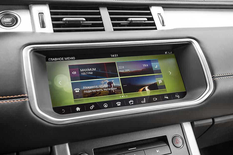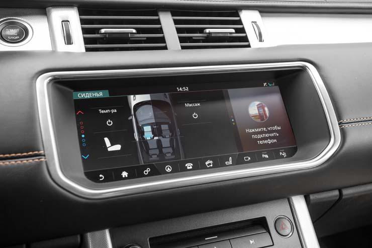 Z-образный механизм складывания крыши от Webasto опускает тканевый верх за 18 секунд, поднимает чуть медленнее – за 21 секунду. Причем система работает на скорости до 48 км/ч. Ездить на Evoque со сложенной крышей комфортно даже московским летом, с его переменчивой ветреной погодой. От сурового российского лета спасает воздушный дефлектор, который устанавливается за передними сиденьями. Благодаря ему потоки воздуха не бьют по шее и спине – в Evoque можно не кутаться в теплые куртки и шарфы даже при движении по трассе.