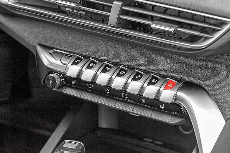 Блок клавиш, похожих на тумблеры – главная «фишка» салона 5008. В таком исполнении наделенные привычными функциями кнопки выглядят очень стильно и необычно