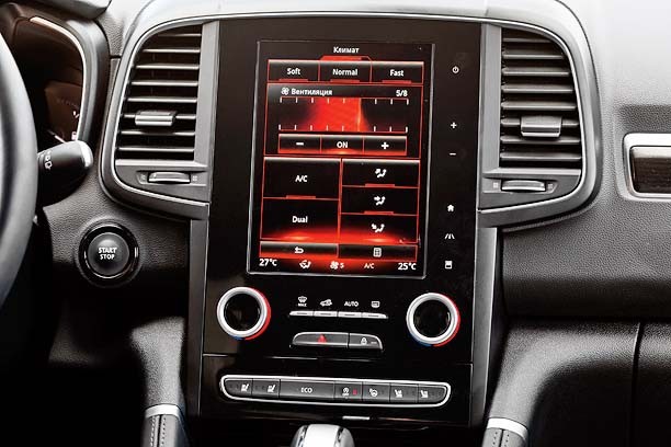 Полноприводная трансмиссия Koleos также управляется электроникой, причем в режиме 4WD Auto задние колеса подключаются автоматически и на них может передаваться до 50% крутящего момента – в зависимости от дорожных условий. Следить за распределением момента по осям можно с помощью изображения на щитке приборов. Также у Renault есть функция принудительной блокировки электромагнитной муфты для совсем уж тяжелых случаев. В этом режиме полный привод становится постоянным, но работает он только на скоростях до 40 км/ч. Кроссовер может быть и исключительно переднеприводным – такой вариант лучше всего подойдет для езды по трассе и в городе, где повышенная проходимость ни к чему, а топливо экономить надо.