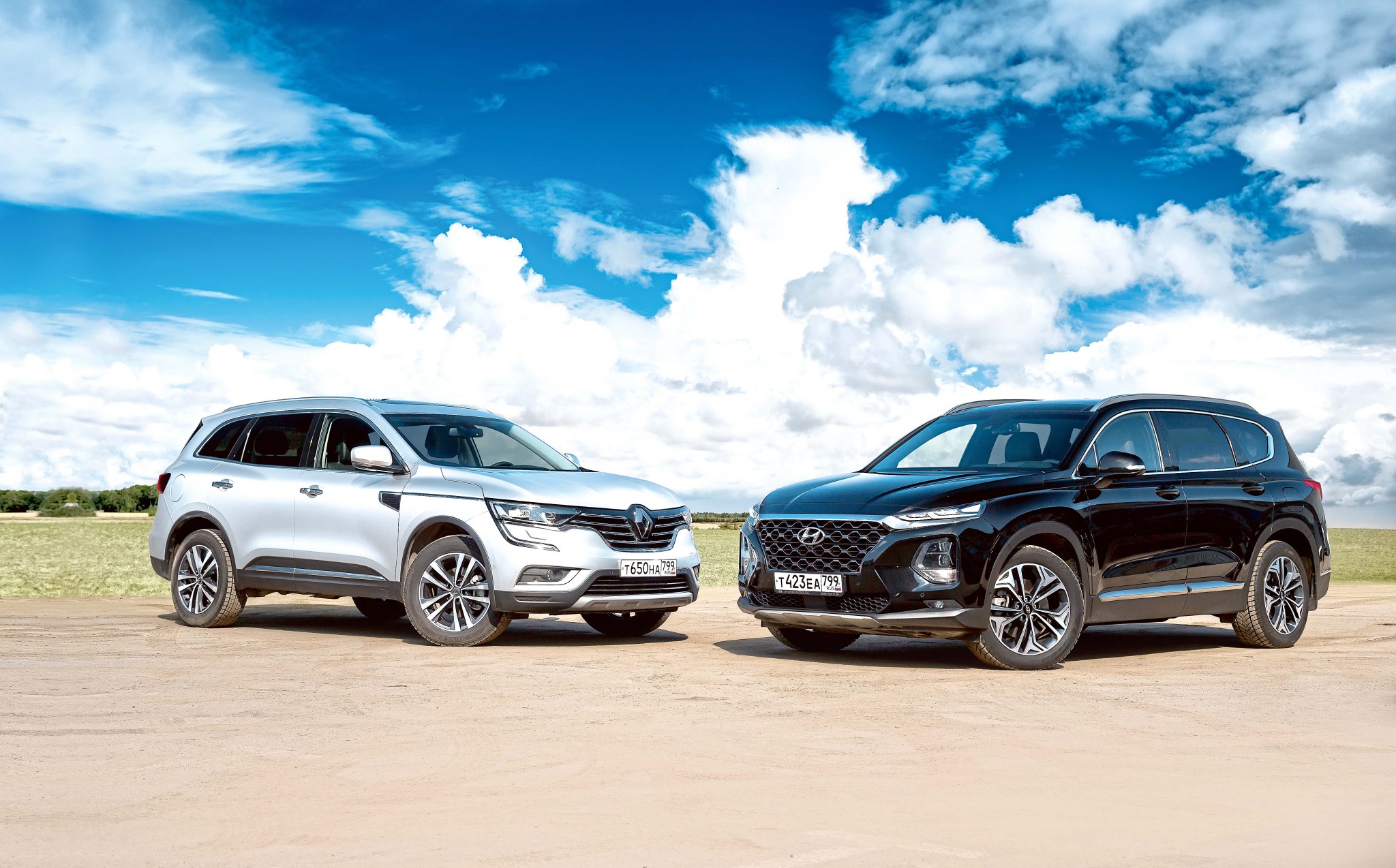 Renault Koleos, 2.0 CVT, 2 461 880 руб; Hyundai Santa Fe, 2.2 АТ, 2 949 000 руб.
