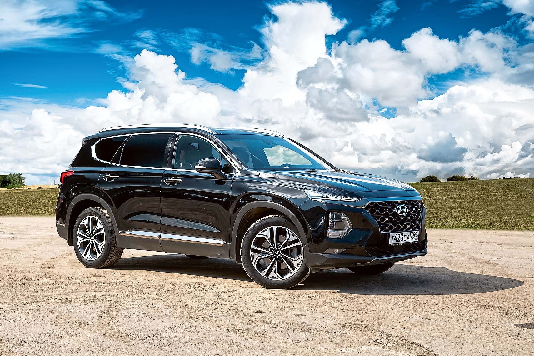 Hyundai Santa Fe на его фоне смотрится весьма тяжеловесным. Видно, что основной акцент при его создании сделан на том, чтобы выкроить для пассажиров как можно больше полезного пространства. А «нагнать страху» на соседей по транспортному потоку призван, помимо общей монументальности образа, бескрайний «щит» радиаторной решетки с остроугольной оптикой по краям.