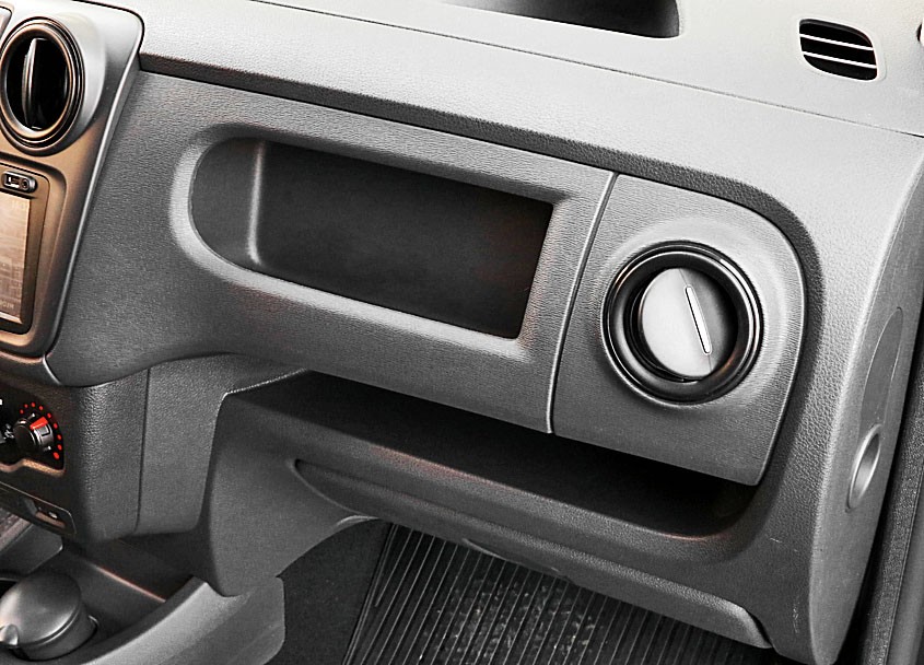 Кресло водителя особым комфортом не блещет, но в целом удобное. Пассажирское сиденье Easy seat ради необходимой трансформации вообще другой конструкции. Оно более плоское – без боковой поддержки. Зато в салоне множество ниш и емкостей для всего, что может понадобится в работе. Внутри гулко и звонко, пустой кузов исправно резонирует все звуки.
