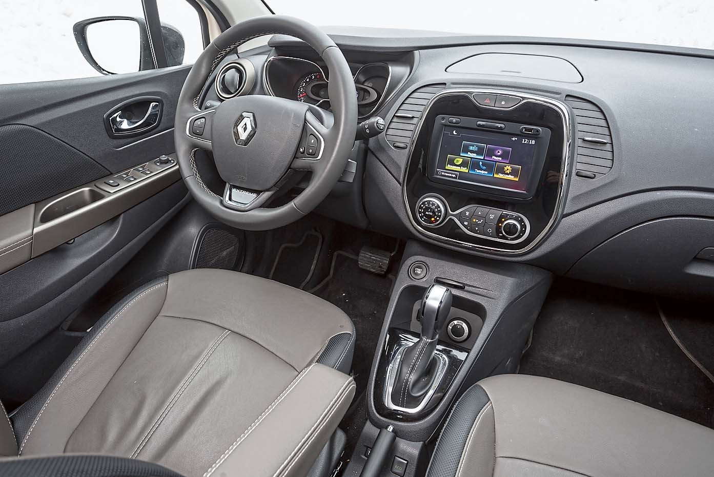 Интерьер Kaptur не перегружен деталями и по-своему симпатичен. Однако и здесь есть неприятные моменты. Кроме неудобно расположенных кнопок подогрева кресел без какой-либо индикации, зимой неудобства доставляет стальная накладка на селекторе КП, которую без перчаток лучше не трогать. Подогрева руля нет вообще, а передние кресла нагреваются очень медленно. В остальном же эргономика хороша, хоть специфическая посадка и потребует от водителя привыкания. Едет Kaptur приятно, если закрыть глаза на «задумчивость» АКП – машина весьма оперативно реагирует на руль, а подвеска на удивление всеядна и не досаждает жесткостью.