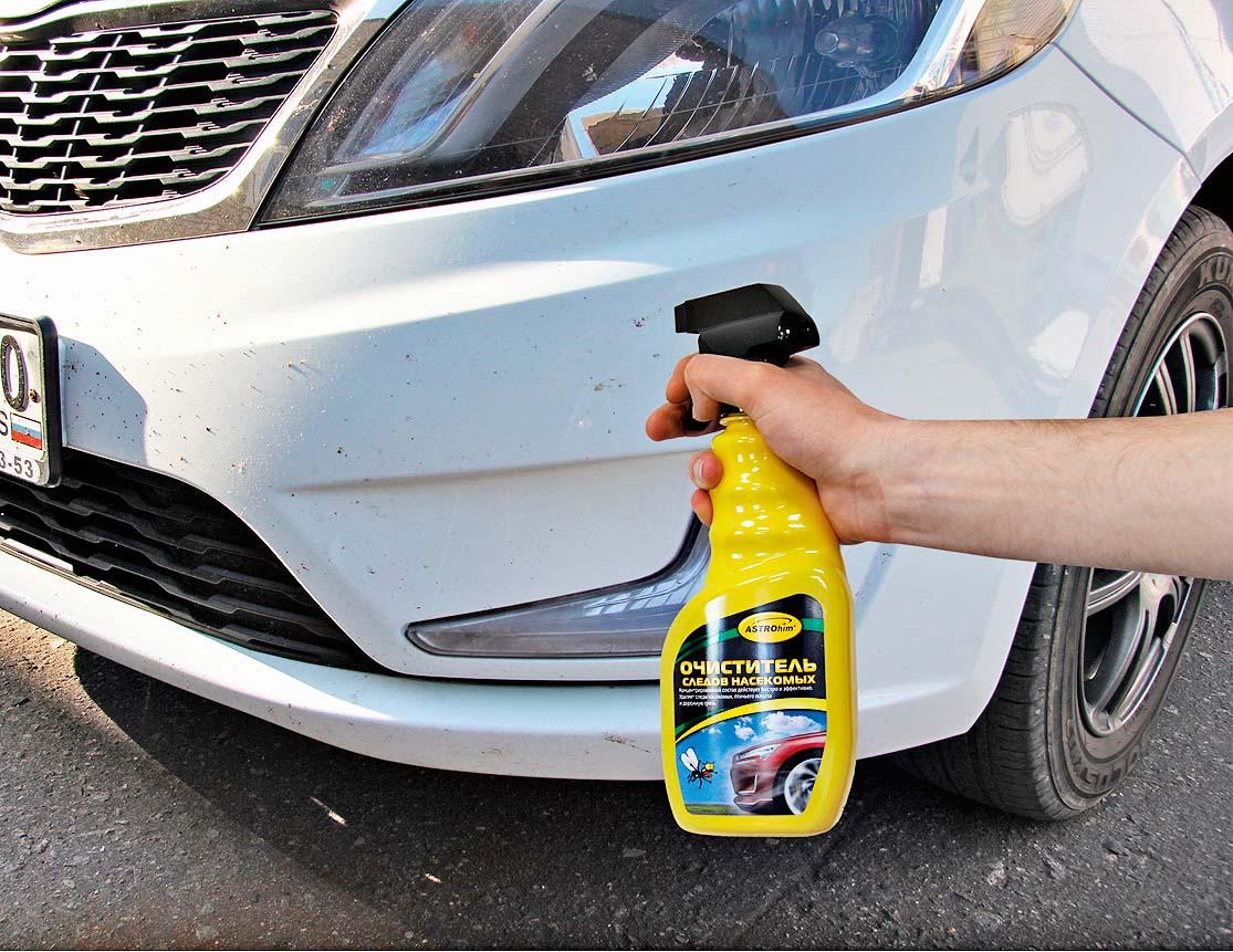 Свои особенности, выгодно отличающие препарат от аналогов, имеет и «Очиститель следов насекомых ASTROhim». Состав создавался специально для удаления специфичных белковых загрязнений, к которым относятся остатки разбившихся насекомых и птичий помет. Благодаря этому продукт с легкостью удаляет даже старые и присохшие органические загрязнения. Остатки очистителя легко смываются обычной чистой водой, не оставляя после себя жирных пятен и не требуя мойки кузова. В завершение отметим, что оба состава не содержат агрессивных растворителей, поэтому безопасны при соприкосновении с любыми кузовными элементами, будь то ЛКП или поверхности хромированных, пластиковых, стеклянных и резиновых деталей.