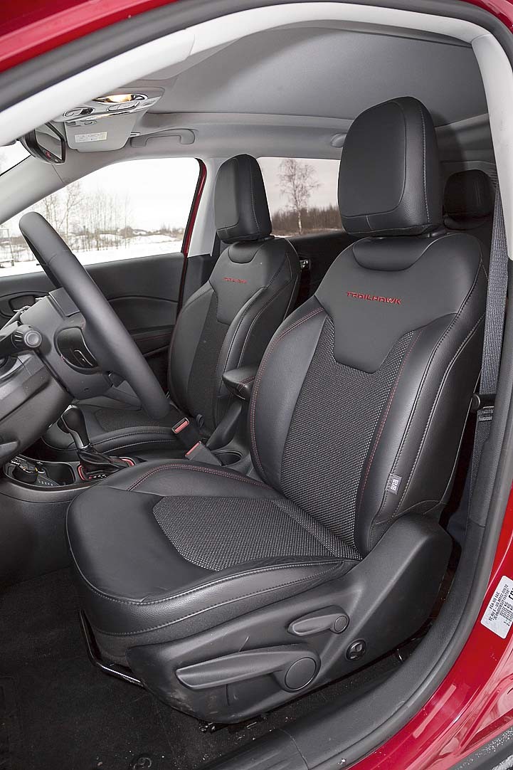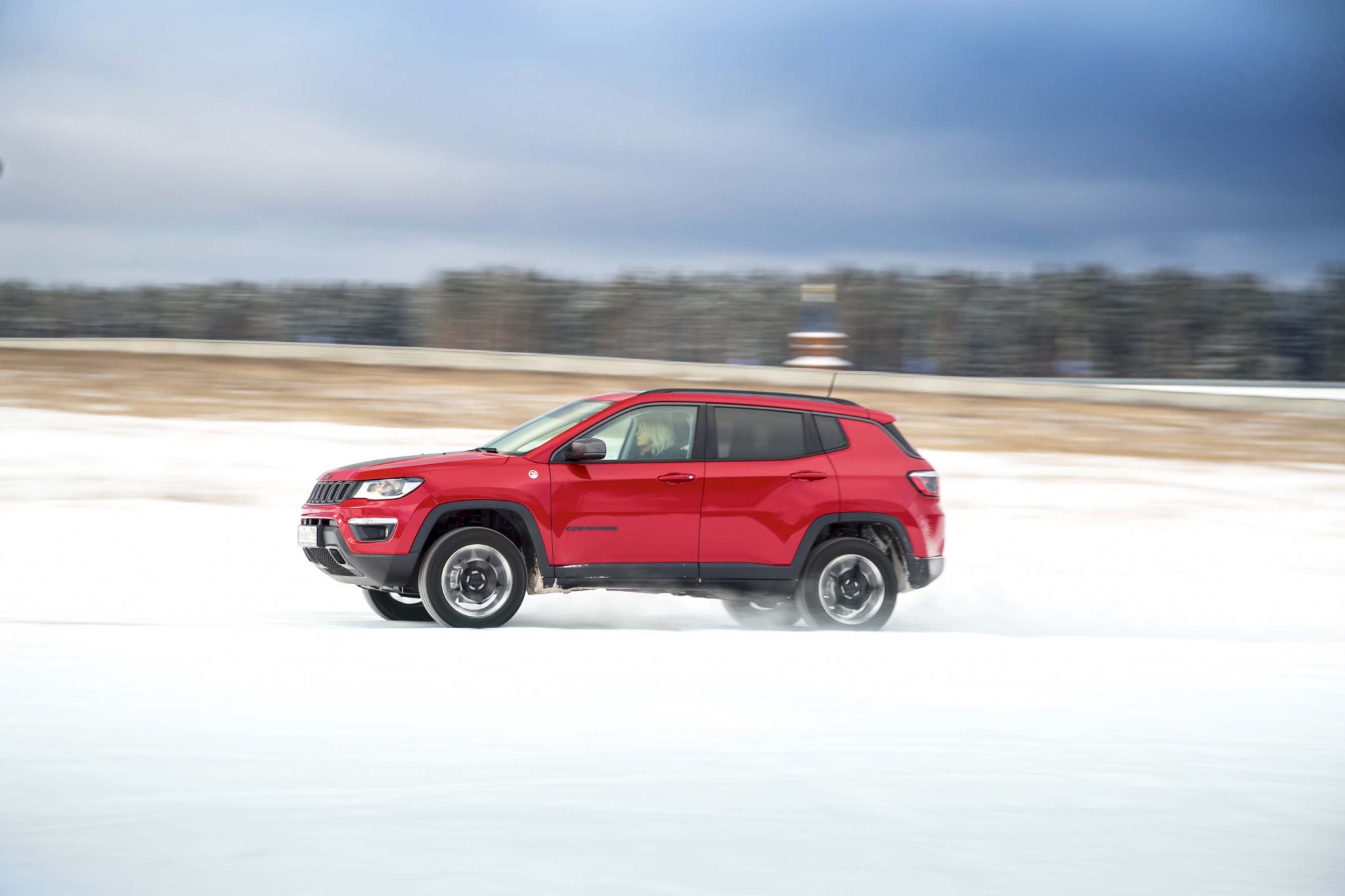 У нас топовая внедорожная модификация Trailhawk с оптимизированной геометрией кузова и роскошным набором опциональных премиум-пакетов. Под капотом 2,4-литровый атмосферник уже на 175 «сил» и новый 9-ступенчатый автомат – тандем, в теории не оставляющий шансов конкурентам с капризными низкообъемными турбомоторами, DSG и вариаторами. Испытать катарсис от энергии разгона тут не выйдет. Но комплексовать не будете. Все происходит пусть и без надрывных истерик, но очень убедительно. Без рывков со стороны трансмиссии или срыва оси. «Пощупать» педаль газа нам удалось и на бездорожье. У 150-сильных модификаций Longitude и Limited внедорожный потенциал пониже: помимо принудительной блокировки муфты, есть несколько режимов системы стабилизации, имитирующей межколесные блокировки – снег, песок и слякоть. В нашем же распоряжении имеется помощник при спуске, «понижающая» первая передача и дополнительный режим «камни». Хотя английское слово rock можно трактовать по-разному. Так вот, с присыпанной первым снежком «пересеченкой» Trailhawk разделался играючи. Хотя тут были и перепады высот, и неприятные скользкие уклоны. Электроника старается вовсю. Понравилась и подвеска. Compass не в тренде. Модным нынче зубодробительным настройкам конкурентов он противопоставил длинноходную подвеску (170 мм спереди, 200 – сзади). На трассе ее собранности хватает, чтобы не чувствовать себя яхтсменом. А на бездорожье комфортнее не придумаешь. Кстати, помогает и плотная посадка за рулем. Кресло по бокам надежно обнимает тело. Подлокотник мал, но стоит на месте. Тогда как препятствий, чтобы быстро орудовать органами управления, никаких. Да и какие там органы? Руль, селектор режимов 4x4 и все? Салон продуман хорошо, хотя в плане дизайна и хайтека многие конкуренты уже ушли вперед.