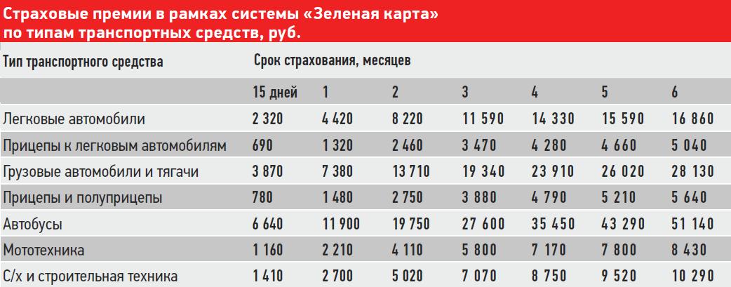 Размеры страховых премий по договорам страхования в рамках международной системы страхования «Зеленая карта», применяемые с 15 сентября 2017 года по 14 октября 2017 года включительно