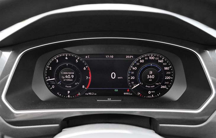 Виртуальная приборная панель, которая предусмотрена для Tiguan в двух старших комплектациях, уже стала привычной. Однако с точки зрения практического использования каких-либо явных преимуществ единый дисплей не дает – классический инструментарий Tucson со стрелочными шкалами спидометра и тахометра и крупным цветным дисплеем между ними воспринимается не хуже. Карту навигационной системы в Volkswagen все равно удобнее видеть на центральном 12-дюймовом глянцевом дисплее. Разумеется, если вы раскошелились на опционную систему Discover Pro с сенсорными кнопками. В пакете с системой кругового обзора, ассистентом парковки и беспроводной зарядкой для мобильного такое головное устройство обойдется в 152 500 рублей.