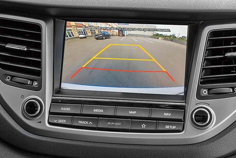 У Volkswagen таковой имеется – для параллельной и перпендикулярной парковки. Обивка сидений – тканевая, со вставками из искусственной замши. Кожаная доступна в качестве опции. Главное преимущество: водительское сиденье Tiguan регулируется в 14 направлениях. За «продвинутое» сиденье для версии Highline все равно попросят доплату в 14 900 рублей, но оно того стоит. Вполне удобны кресла и в Hyundai – но, что называется, без особых изысков. Регулировка наклона спинки – бесступенчатая, с помощью вращающейся рукоятки. А вот электропривод только один – для поясничного подпора. Похожим образом частично электрифицировано и водительское кресло Tiguan – но за счет возможности изменить наклон подушки или ее длину оно кажется более удобным.
