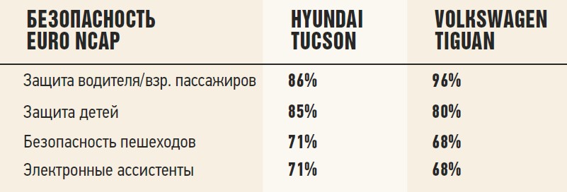 Volkswagen удалось создать классный автомобиль – и предложить его рынку по вполне адекватной цене. Если вынести за скобки традиционно дорогие опции. Hyundai Tucson – также весьма толковый и сбалансированный продукт. Вот и с точки зрения продаж оба кроссовера занимают в России достойное место. Не безоговорочные лидеры – но вполне заметные игроки. А для предпочитающих классические технические решения у корейцев припасен атмосферный 2,0-литровый мотор и гидромеханическая АКП – которых нет у Volkswagen.