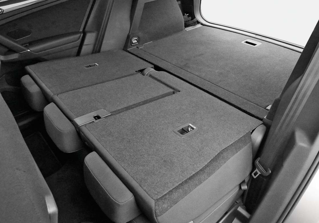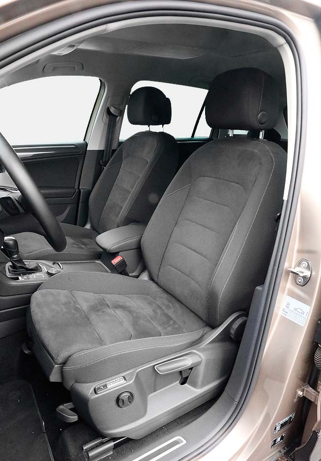 ОБИВКА СИДЕНИЙ в тестовом Tiguan комбинированная – с ворсистыми «замшевыми» центральными вставками. По краям – ткань.