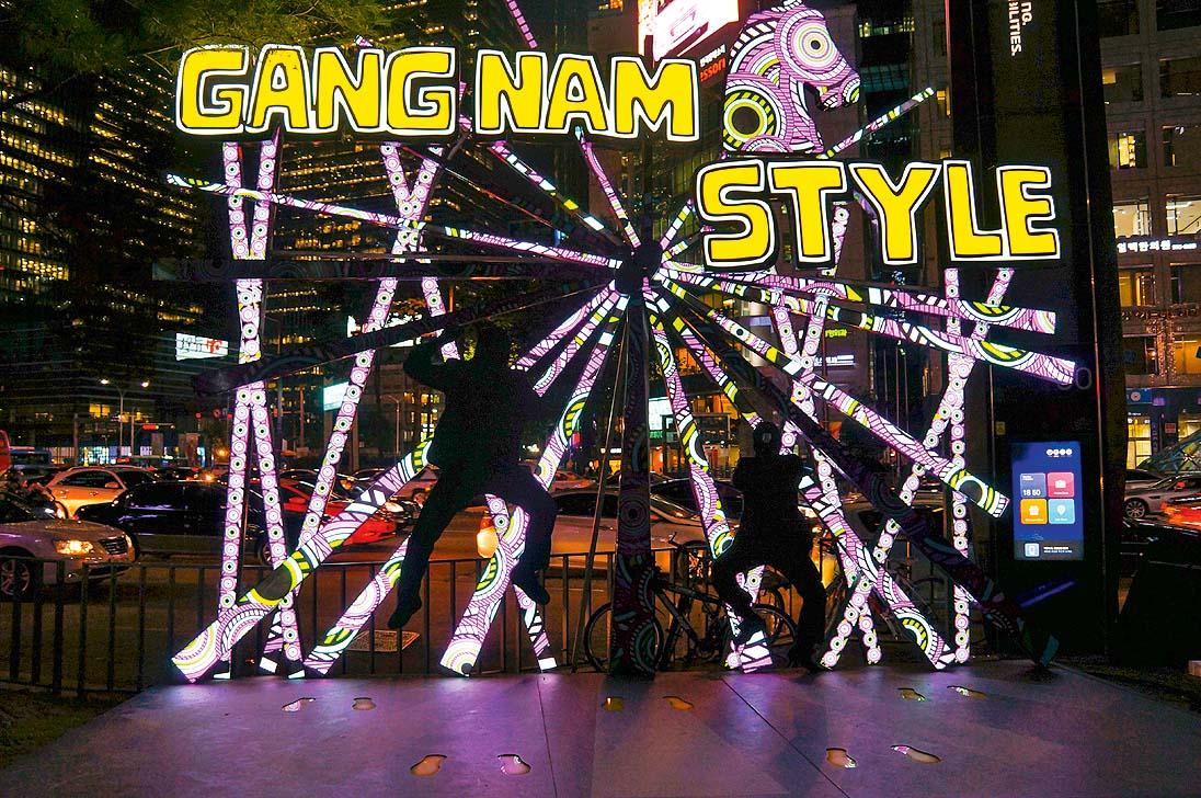 Кстати исполнять танец в стиле клипа «Гангнам стайл» разрешено не везде. То и дело попадаются запрещающие знаки, на которых изображен прыгающий человечек с пояснением «NO Gangnam». Зато для особо желающих сооружены специальные сцены – танцуй, сколько хочешь!