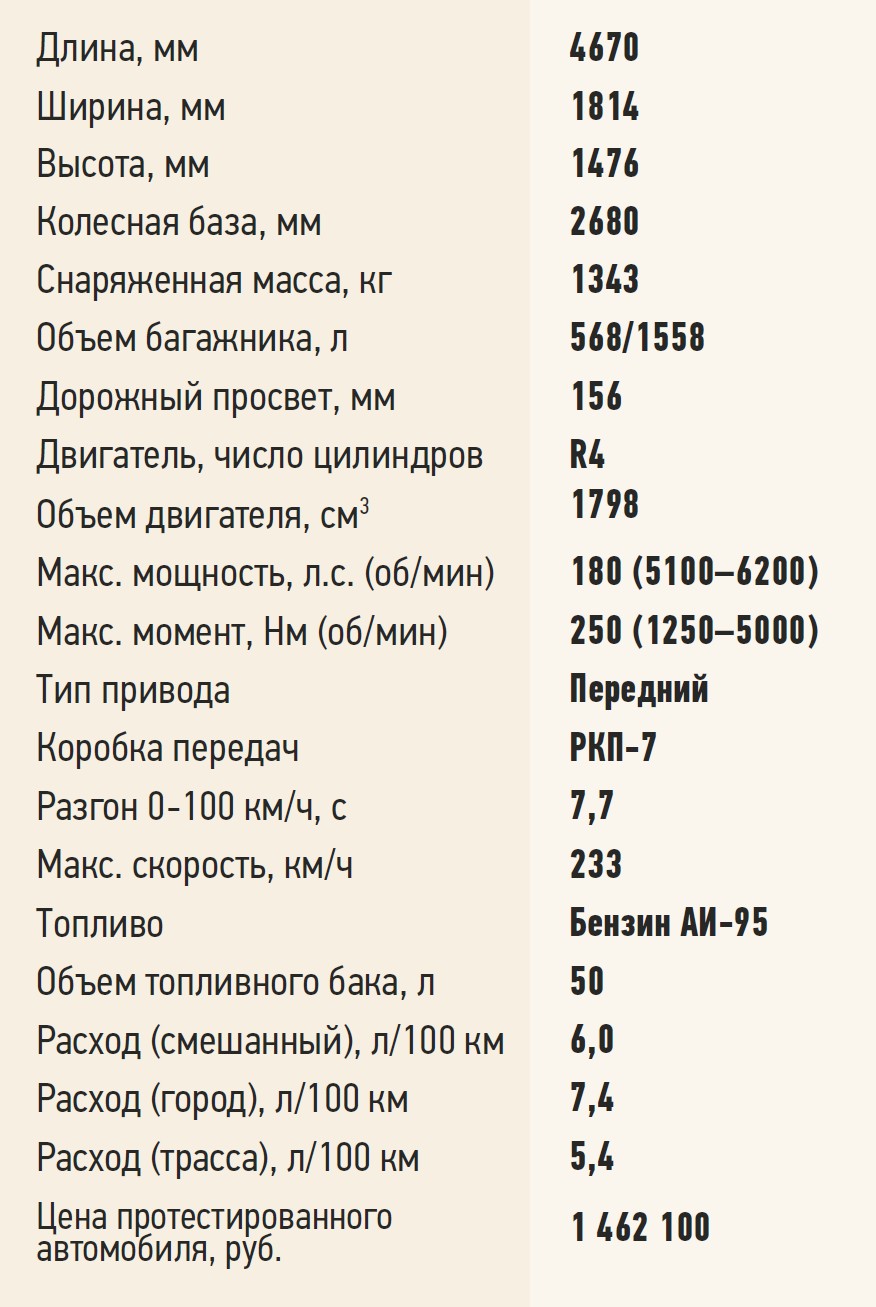 Наш тестовый автомобиль с топовым в линейке 180-сильным бензиновым мотором и 7-ступенчатым «роботом» с двумя сцеплениями. Классика! Но у нас в России такое сочетание не самое популярное – потому что дорого. Дешевле 1 366 000 рублей такой автомобиль не купить. А уж если замахнуться на топовую комплектацию – с модной мультимедиа, большим 8-дюймовым экраном, голосовым управлением, литыми колесами и цифровой приборной панелью – придется выложить как минимум 1 486 000 рублей. Поэтому в ходу все же более доступные модификации. Хотя – стоп! Мы же решили забыть хотя бы на время о практичности Skoda Octavia!