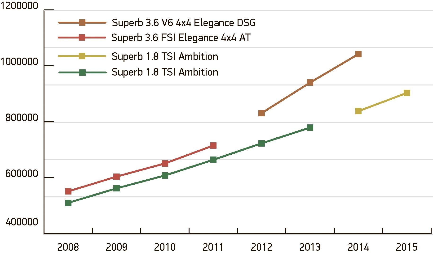 Стоимость эксплуатации Superb напрямую зависит от комплектации и состояния