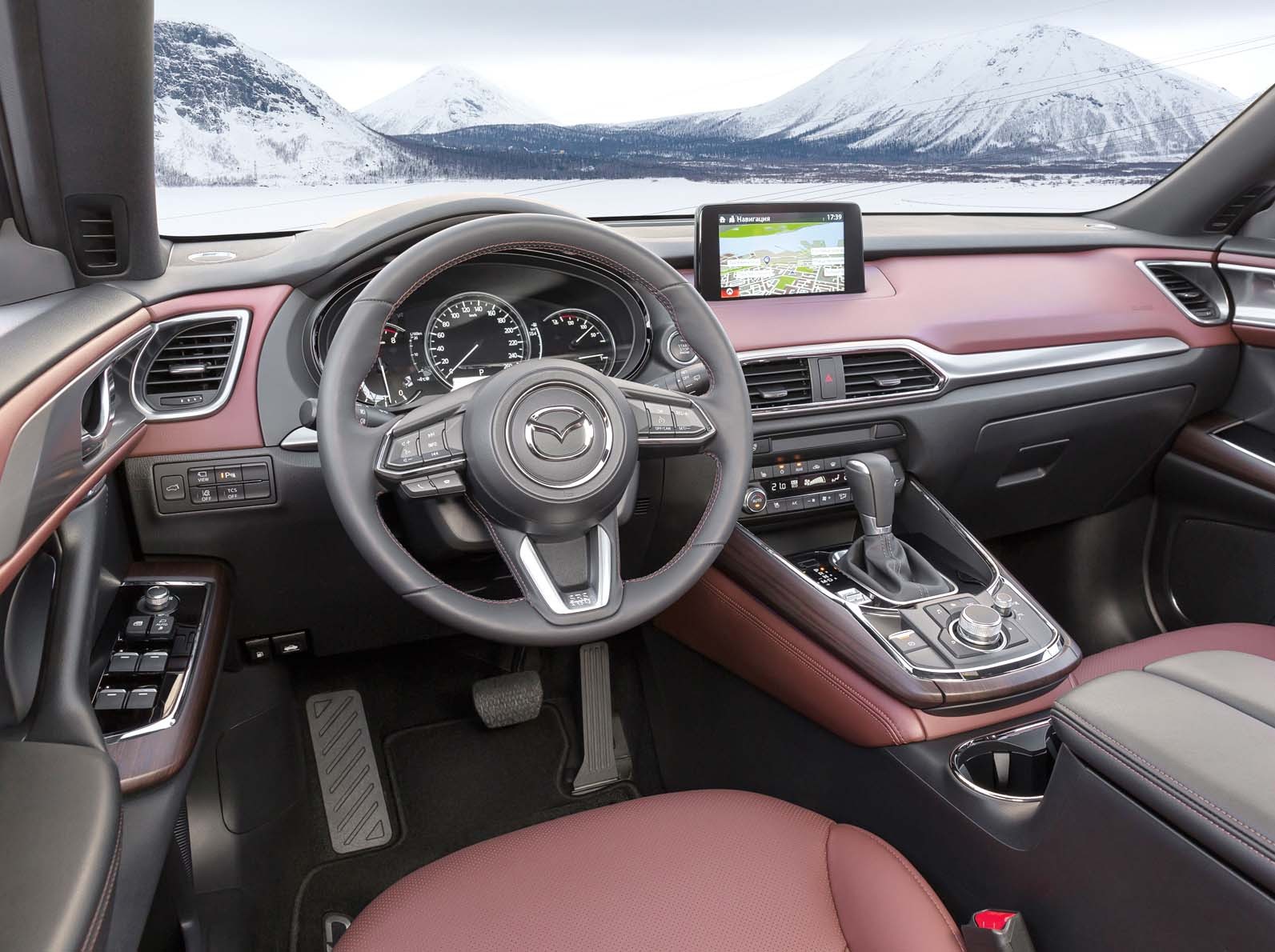 А вот роль топовой модификации теперь отдана новой версии Executive, за которую просят 3 357 000 рублей. Что в ней нового? Давайте считать. Во-первых, в отделке салона используется кожа Nappa Auburn и натуральное дерево. Во-вторых, у автомобиля появилась система кругового обзора, которая предлагает несколько режимов отображения окружающей автомобиль обстановки. Также Mazda CX-9 стала первой моделью японской марки, которая оснащается мультимедийной системой, поддерживающей Apple CarPlay и Android Auto.